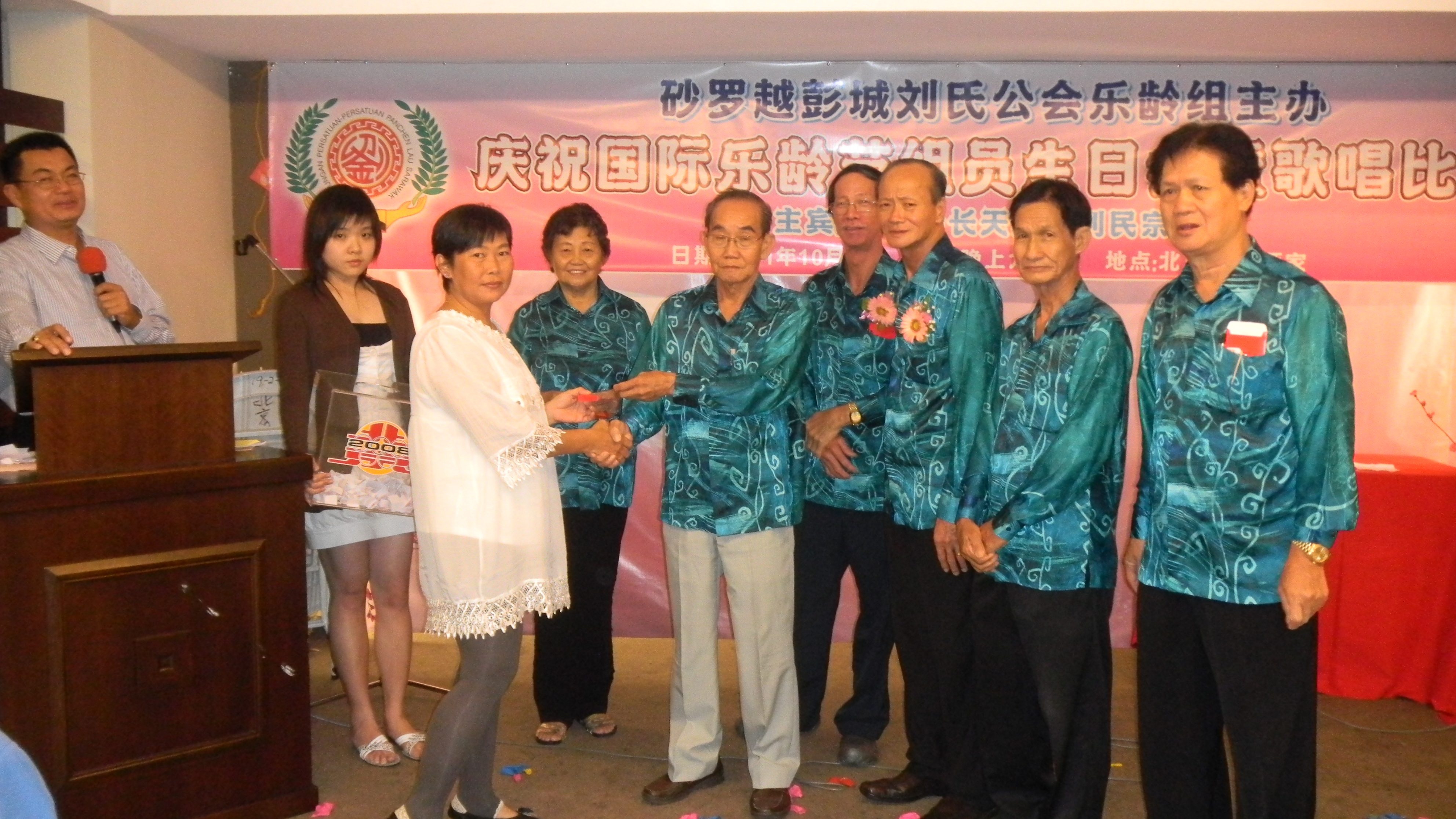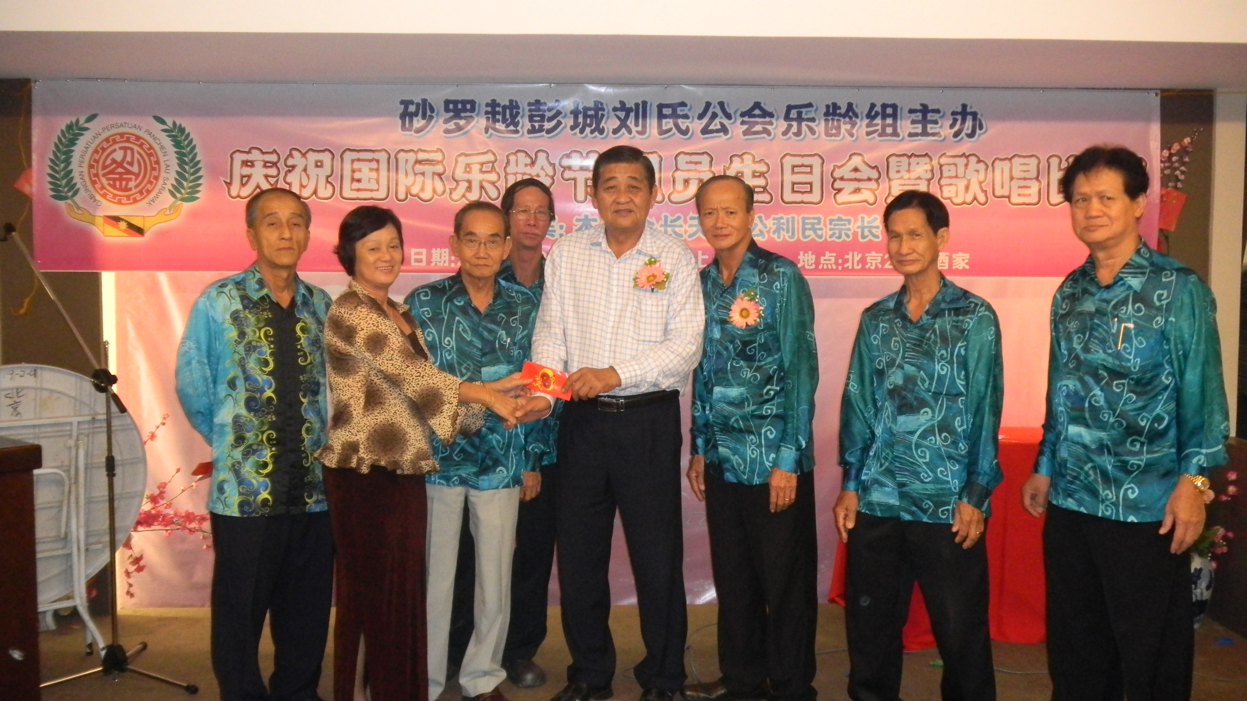 砂罗越彭城刘氏公会乐龄组庆祝国际乐龄节组员生日会暨歌唱比赛【09-10-2011】 Posted by admin | On 20 10 月,2011 | In 未分類 上下图片为乐龄组主任人群宗长颁发幸运抽奖得奖者。 筹备会主席贤禄宗长致欢迎词。 联合爆球开幕仪式。 齐切蛋糕仪式。 乐龄组组员与主宾会长天猛公利民宗长等领导合影。 乐龄组主任人群宗长致词。 主宾本会会长天猛公利民宗长致勉励词。 筹备会主席贤禄宗长赠送纪念品予主宾天猛公利民宗长。左起秘书永尧,副主席扬斌及财政久胜合影。 以下图片为余兴节目 以下图片为颁发乐龄组组员生日红包暨歌唱比赛得奖者红包 Related Posts 砂罗越彭城刘氏公会第廿三届(2023-2024)会员大会暨选举--8-1-2023 砂罗越彭城刘氏公会第廿届青年团,第廿一届妇女组,第九届乐龄组(2021-2022)团员,组员,乐龄组组员大会暨选举新届团委,组委及乐龄组执委--10-1-2021) 【活动通告】马来西亚刘氏总会青年团妇女组联合主催。砂罗越彭城刘氏公会青年团妇女组联合主办。各属会青年团妇女组联合协办。第五届马来西亚刘氏宗亲常识比赛暨第十一届砂罗越彭城刘氏联合总会常识比赛--2013年9月15日(星期日) About Author admin Leave a Reply發佈留言必須填寫的電子郵件地址不會公開。 必填欄位標示為 *顯示名稱 * 電子郵件地址 * 個人網站網址 在瀏覽器中儲存顯示名稱、電子郵件地址及個人網站網址,以供下次發佈留言時使用。 Δ