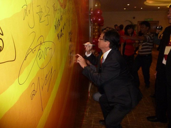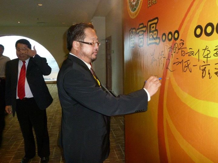 总主席天猛公刘利民在留言区布告栏签上大名。