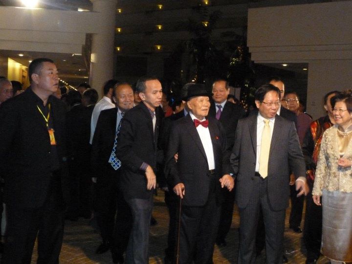 创会总主席兼名誉主席丹斯里拿督刘南辉太平局绅(右3)抵达会场与左起潘斯里陈慧玉、总主席天猛公刘利民、世刘执行秘书彭汉方、刘连腾及刘兆水合摄。