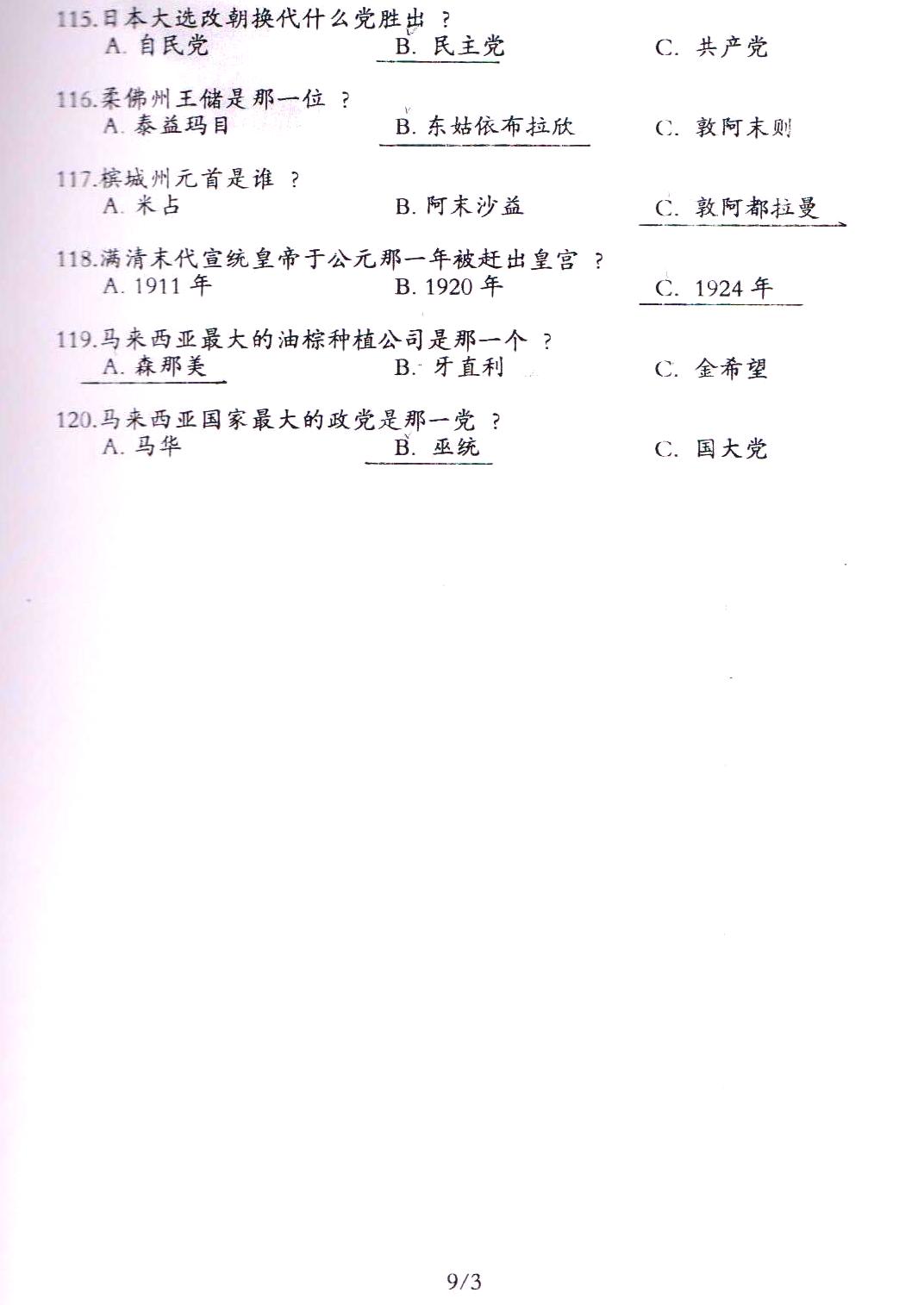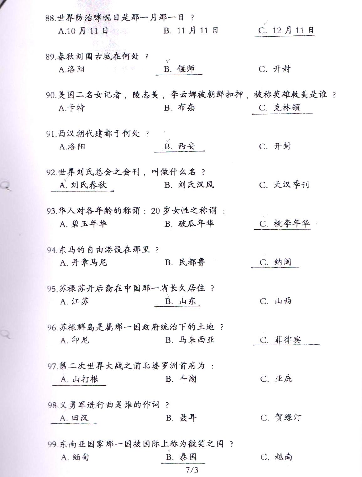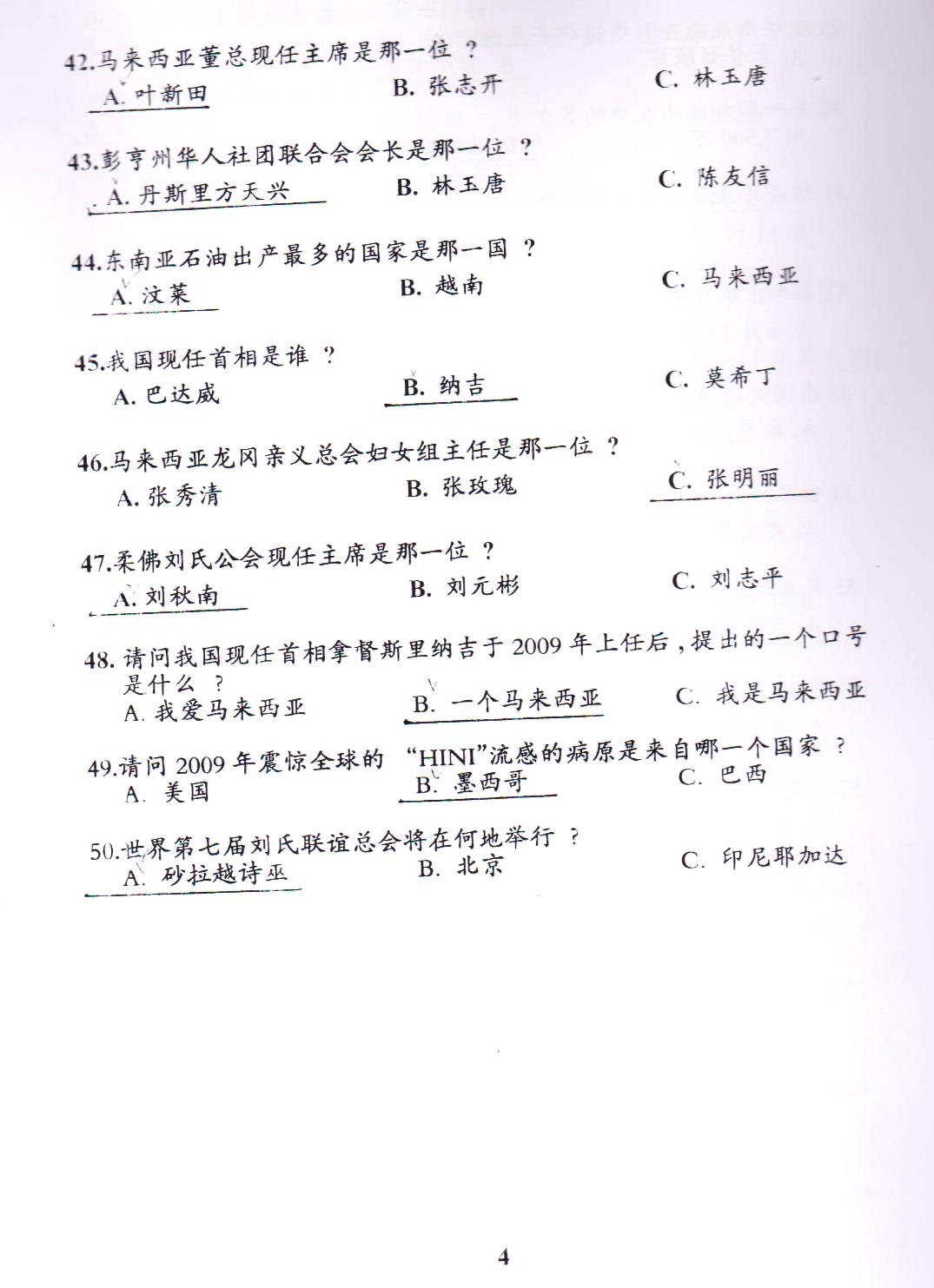 第一届【马来西亚刘氏宗亲常识比赛】暨 第七届【砂罗越彭城刘氏宗亲常识比赛】各组题目-2009年